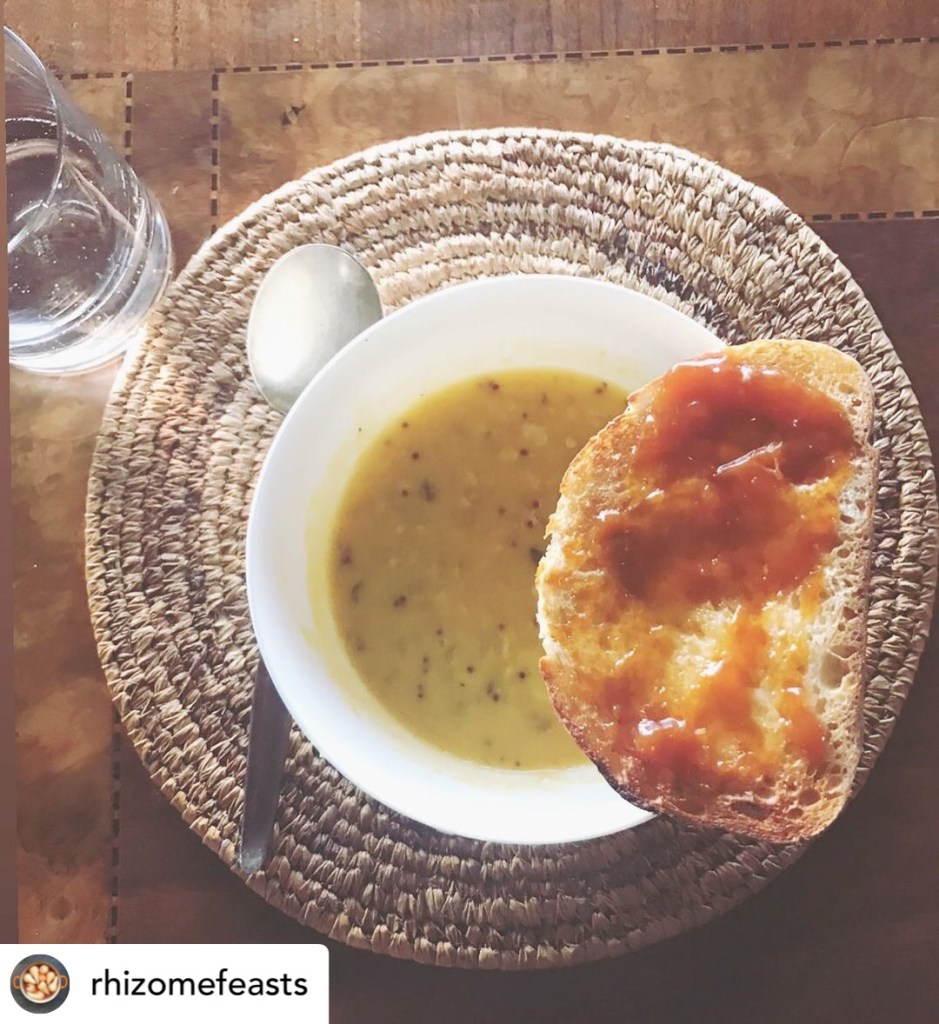 •Leftovers are thinned to be consumed as a soup for lunch or left thicker served as lentil hummus.