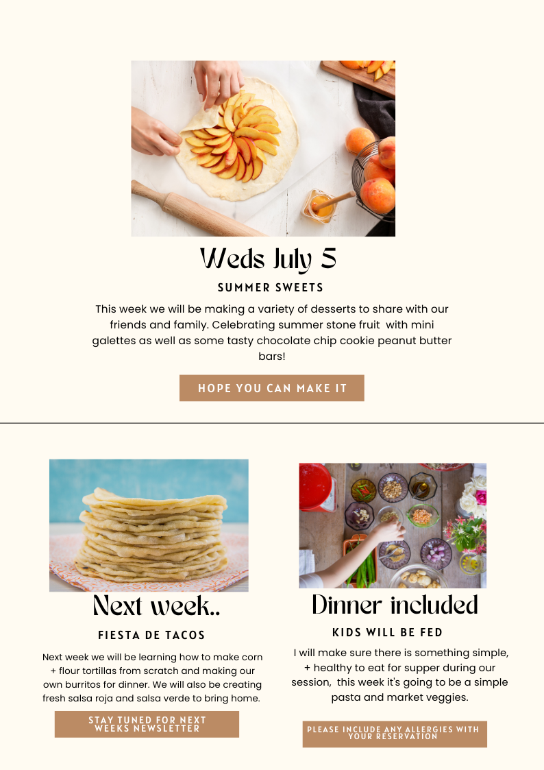 Here is a peek of the cook club email newsletter updating parents on our recipes and cooking adventures.